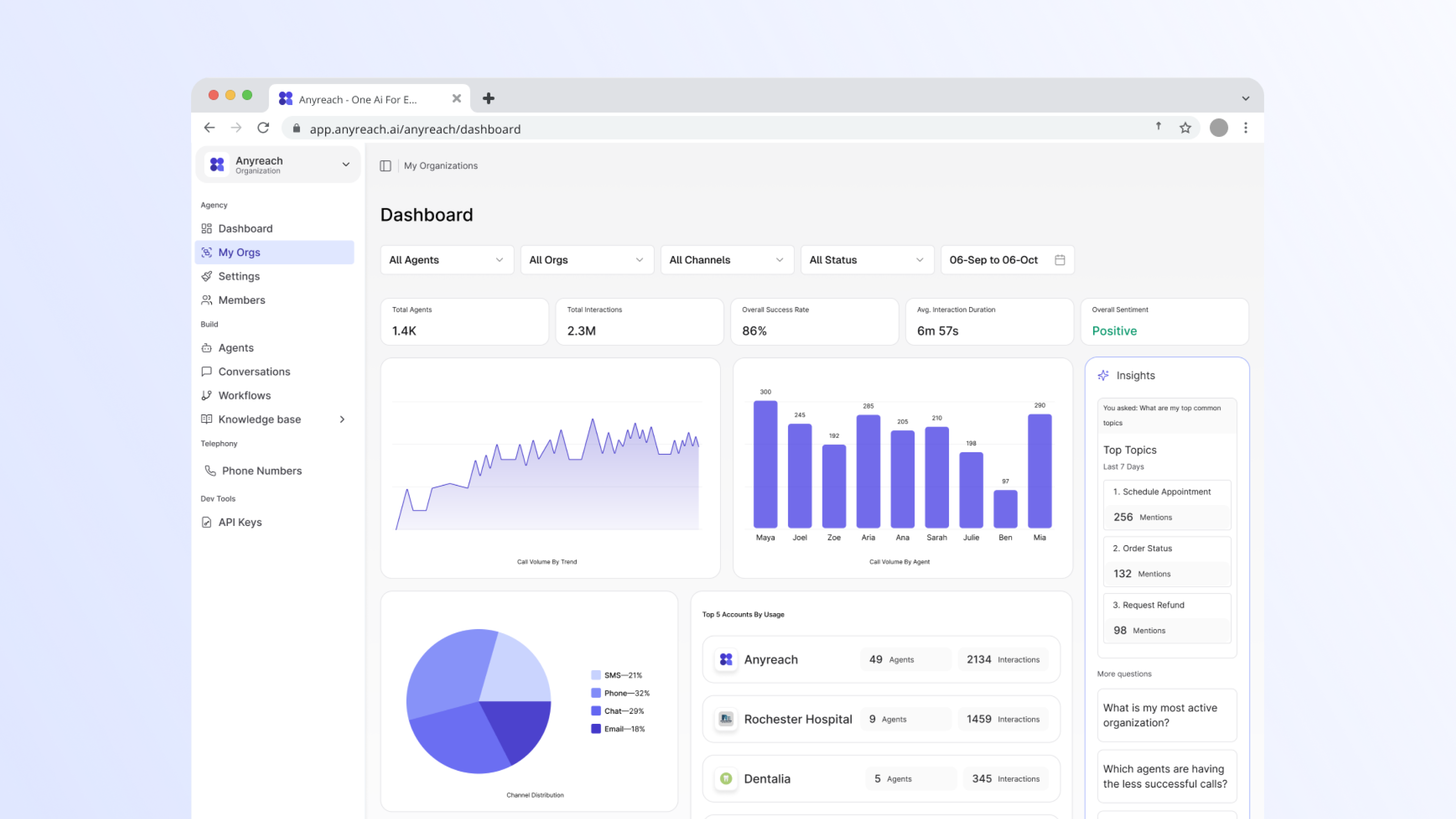 Anyreach delivered a secure AI environment with isolated testing, feature gating, and controlled data access. Voice and chat systems were fully automated and synchronized with existing CRM workflows.